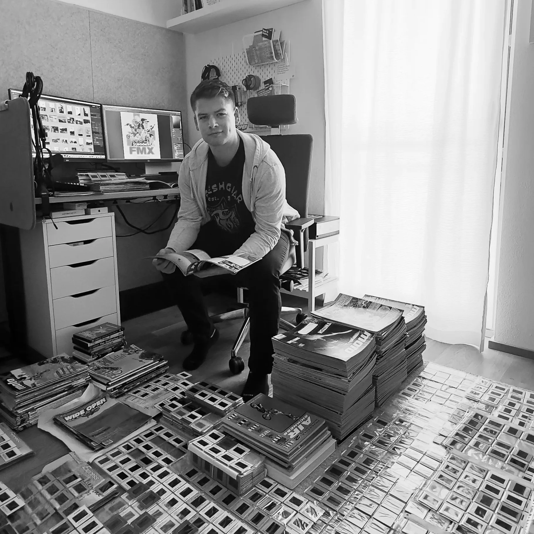 As a kid, I developed a deep excitement for Freestyle Motocross. Europe’s largest and most influential print medium at the time—German motoX magazine—became my portal into the captivating world of FMX. Like many other kids, I drew my favorite riders on blank pages of my school books, scribbled Fleshgear logos, and threw No-Footers and Can-Cans on a bicycle over a self-built plywood ramp (I wasn’t going big by any means, but the feeling of just doing a small trick was huge!)